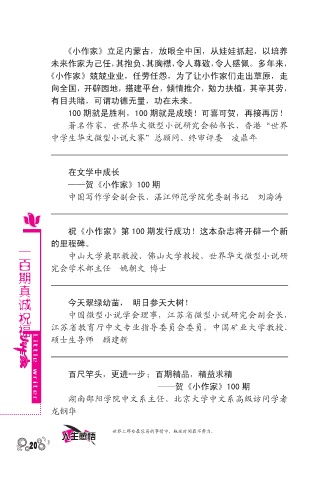 一百期真诚祝福 祝《小作家》第 100 期发行成功!这本杂志将开辟一个新