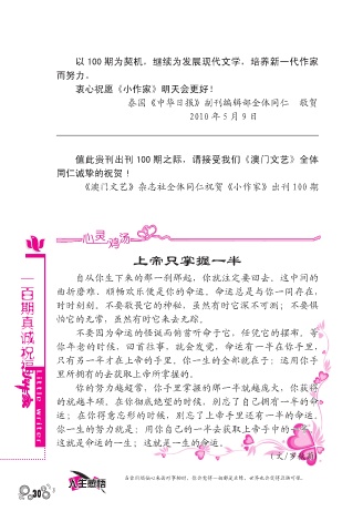 《澳门文艺》杂志社全体同仁祝贺《小作家》出刊 100 期