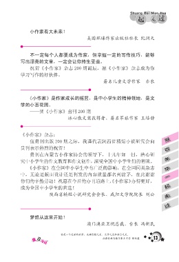你们的辛勤劳动!祝愿在今后的办刊道路上,《小作家》办得更好,